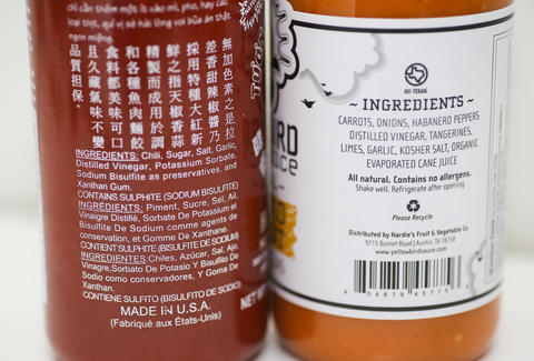 Sriracha sauce ingredients label