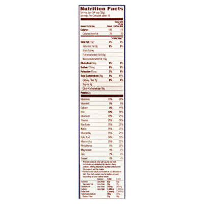 Post Honey Bunches of Oats Cereal with Almonds Family Size Calories, 170 ; Calories from Fat, 0 ; Saturated Fat 0g, 0% ; Dietary Fiber 2g, 9% ; Added Sugars 8g, 15% ...