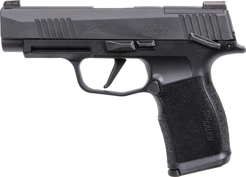 Sig P365 - Proven Arms and Outfitters Lightweight and easy to conceal, the P365 is chambered in 9mm and is rated for +P ammunition. Included standard are XRAY3 Day/Night sights, a 10-round flush fit magazine, and a 10-round extended magazine. An optional 12-round (purchased separately) extended magazine allows you to bring the total capacity to 13 rounds. The new P365. Bring More.