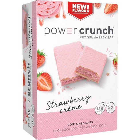 Power Crunch Protein Energy Bars - Strawberry Creme - 5ct This delicious cream-filled wafer energy bar delivers 13g of protein, 5 grams of sugar and contains no sugar alcohols. Power Crunch are the original wafer cream energy bars with an irresistible crunch. With these bars you don't have to pick between a snack that is delicious and a snack that serves your body well.