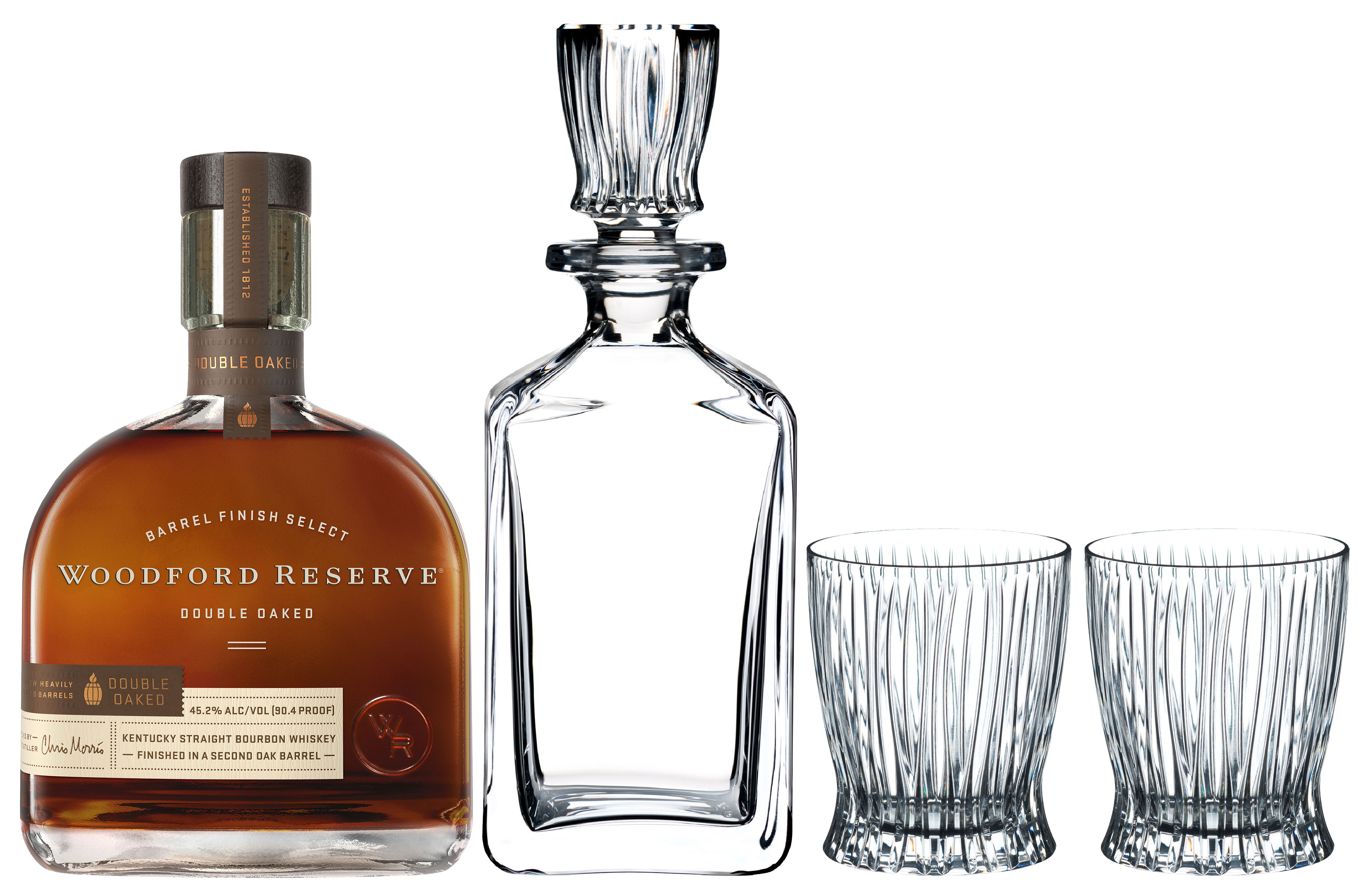 Woodford Reserve Double Oaked Bourbon Whiskey & Riedel Gift Set Currently Unavailable $199.99 The Woodford Reserve Bourbon Whiskey & Riedel Gift Set features Woodford Reserve Double Oaked Kentucky Straight Bourbon Whiskey from Kentucky with a high-end crystal glassware set from Riedel like it deserves. The perfect gift for someone who loves quality and luxury! Gift Set Includes: