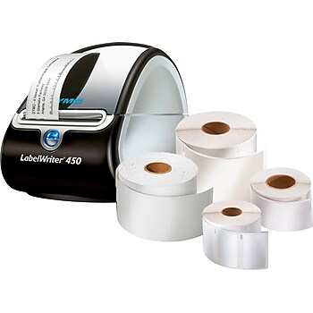 DYMO LabelWriter 450 Direct Thermal Label Printer Bundle with Shipping ... COST SAVING BUNDLE: For the price of 4 DYMO LW labels, you get a FREE LabelWriter 450 to print your labels; ELIMINATE THE WASTE AND HASSLE OF SHEET LABELS: The DYMO® LabelWriter 450 prints precise quantities without difficulty; NEVER BUY INK AGAIN: Direct Thermal printing technology eliminates the cost of ink and toner