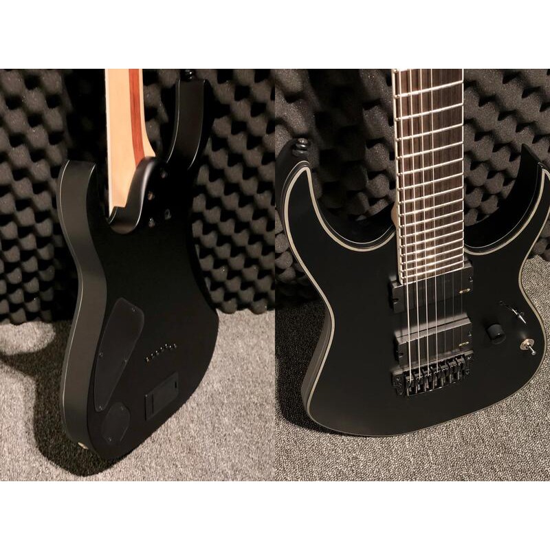 Ibanez Iron Label RGIR37BFE-BKF Black Flat - Music Store The Ibanez Iron Label RGIR37BE-BKF Black Flat combines the powerful sound of active EMG 707 pickups and the extended range of a low H string with the feel of the famous manoeuvrable Ibanez "Nitro Wizard-7" neck profile and is the weapon of choice for stage and rehearsal room.