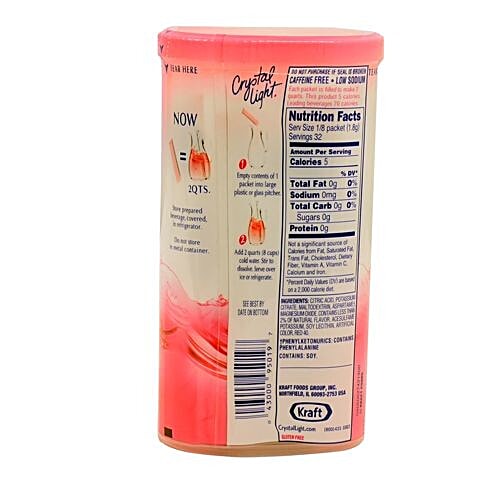 Crystal light nutrition facts label. Crystal Light Lemonade Naturally Flavored Powdered Drink Mix - QFC Ship. Unavailable ; Nutrition Facts. 30.0 servings per container. Serving size1/5 packet (3g). Amount per serving. Calories5. % Daily value*. Total Fat0g0%. Carbs in Crystal Light - prepared from dry mix, all flavors Crystal Light - prepared from dry mix, all flavors (8 fluid ounce) contains 1.1g total carbs, 1.1g net carbs, 0g fat, 0g protein, and 3 calories. Crystal Light - Nutrition Facts - MyFoodDiary Crystal Light ; Crystal LightLiquid Drink Mix – Lemon Iced Tea. 0.5 tsp. Nutrition Facts. 0 calories. Log food ; Crystal LightGrape Drink Mix w/ CaffeineOn-the-go ... Crystal Light Calories and Nutrition Information. Page 1 - Nutritionix Calories and nutrition information for Crystal Light products. Page 1.