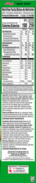 Kellogg's® Apple Jacks® cereal - SmartLabel™ Kellogg's® Apple Jacks® cereal. 1.5 oz. 00038000863509. Nutrition. Ingredients. Allergens. Features & ... Nutrition Facts. Servings Per Container 1.